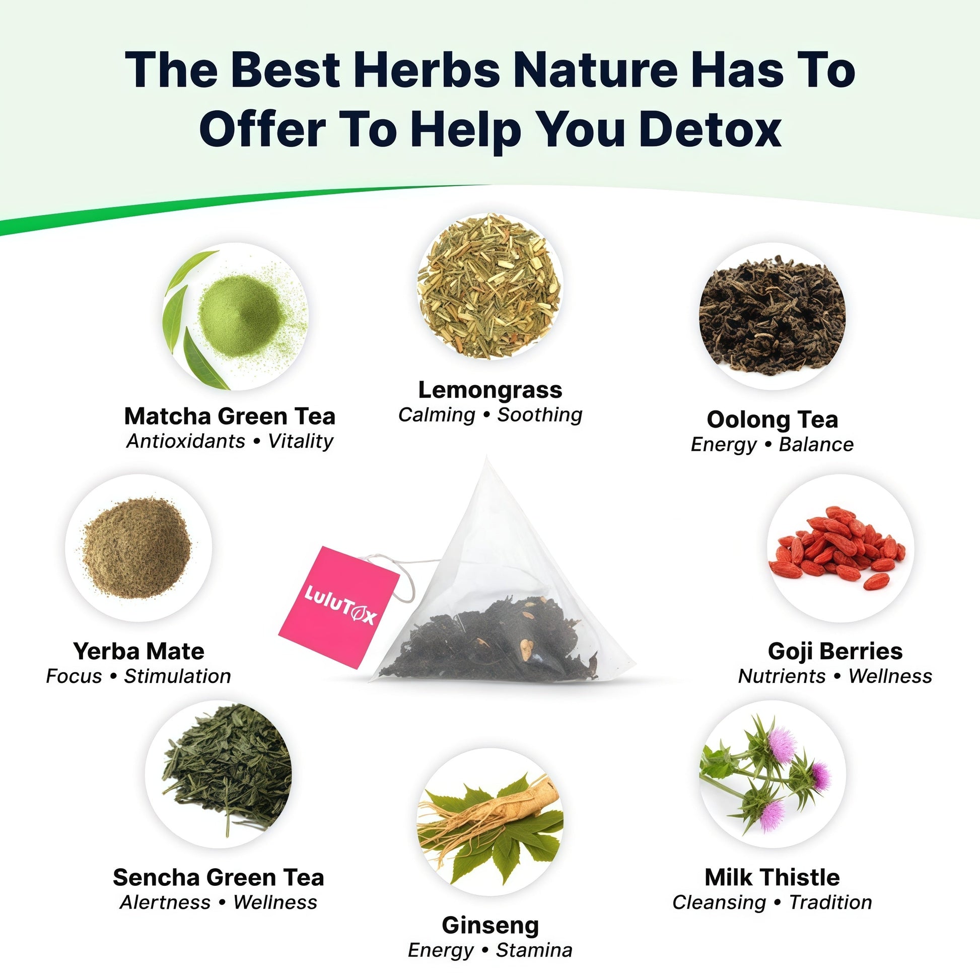 Lulutox Detox Tea is designed to complement your wellness routine. It's a carefully crafted blend of herbs and spices that aim to energize the body and support metabolic function. This tea is formulated to assist in promoting digestive health and to help soothe feelings of bloating.
